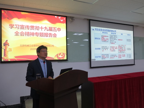 12月1日,按照學(xué)習(xí)方案要求,北自所組織召開(kāi)了學(xué)習(xí)宣傳貫徹黨的十九屆五中全會(huì)精神專題報(bào)告會(huì),一線事業(yè)部中層干部、部分黨員和職能部門黨員共100余人參加。王振林書(shū)記以《學(xué)習(xí)貫徹五中全會(huì)精神 戰(zhàn)略導(dǎo)向 能力驅(qū)動(dòng) 奮力實(shí)現(xiàn)北自所“十四五”高質(zhì)量發(fā)展》為題講了專題黨課。副總經(jīng)理劉波主持會(huì)議。