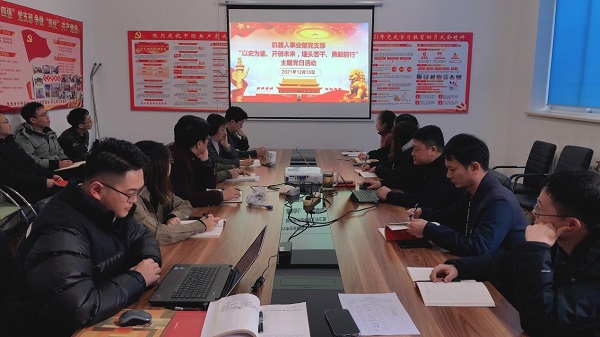 為深入學(xué)習(xí)貫徹黨的十九屆六中全會(huì)精神,自覺(jué)踐行初心使命,按照公司黨委部署要求,12月13日下午,機(jī)器人事業(yè)部黨支部聯(lián)合團(tuán)支部開(kāi)展“以史為鑒、開(kāi)創(chuàng)未來(lái),埋頭苦干、勇毅前行”主題黨日,共計(jì)17人參加,會(huì)議由黨支部書(shū)記趙宏劍主持。