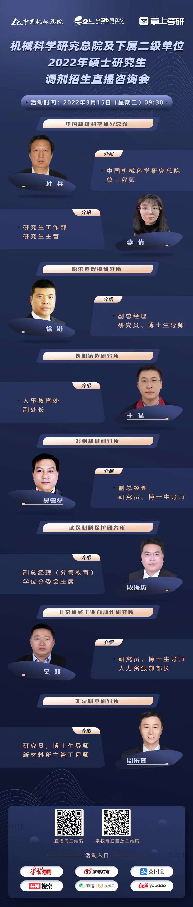 直播預告 | 機械科學研究總院及下屬二級單位2022年碩士研究生調劑招生直播咨詢會