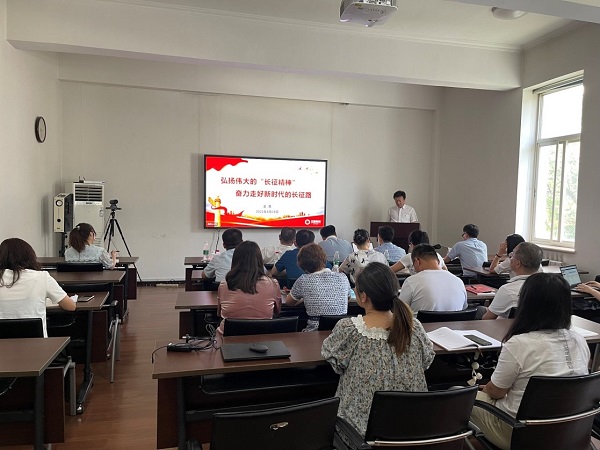 課上,北自科技黨總支書記、常務副總王勇為黨員們講授《弘揚偉大的“長征精神”,奮力走好新時代的長征路》專題黨課,帶領廣大黨員回顧了長征路,并圍繞長征精神的時代價值、長征勝利的啟示等方面講述長征精神。